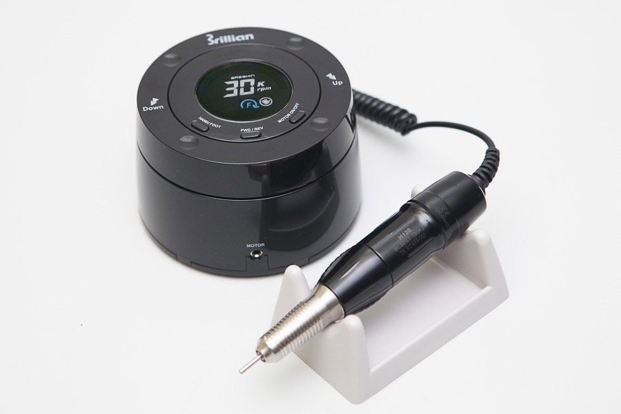 Аппарат для маникюра "Brillian" (Black)Компактный аппарат для проведения процедур маникюра, педикюра и наращивания ногтей.Скорость вращения 30,000 об/мин (ручка H120), имеется функция реверса. Цифровое табло показывает выбранную скорость вращения. Регулировка скорости осуществляется необычным круговым регулятором на крышке корпуса.В комплект поставки входит педаль вкл/выкл.Вес наконечника: 170 гГрафик допустимого диапазона работы наконечников маникюрных аппаратов Размер (ДхШхВ): 116x103,7x77 мм