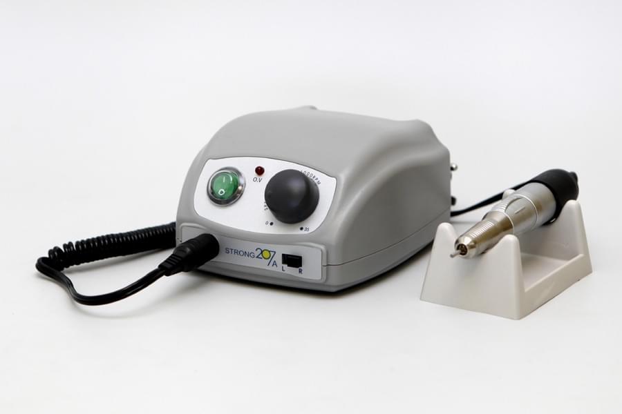 Мощность микромотора составляет 64 Ватта Скорость вращения 30,000 об/мин Аппарат для маникюра Strong 207A/120 имеет функцию реверса. Без педали