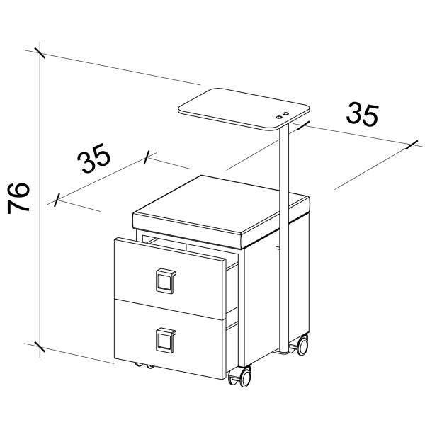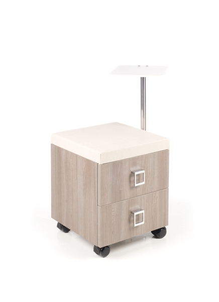 Маникюрная стойка оснащена колесиками для удобства перемещения, специальную регулируемую полочку (рабочая поверхность) и двумя выдвижными ящиками. Каркас стойки выполнен из дерева. Варианты цвета каркаса стойки на выбор: белый, черный или натуральное дерево. Обивка - искусственная кожа высшего качества.