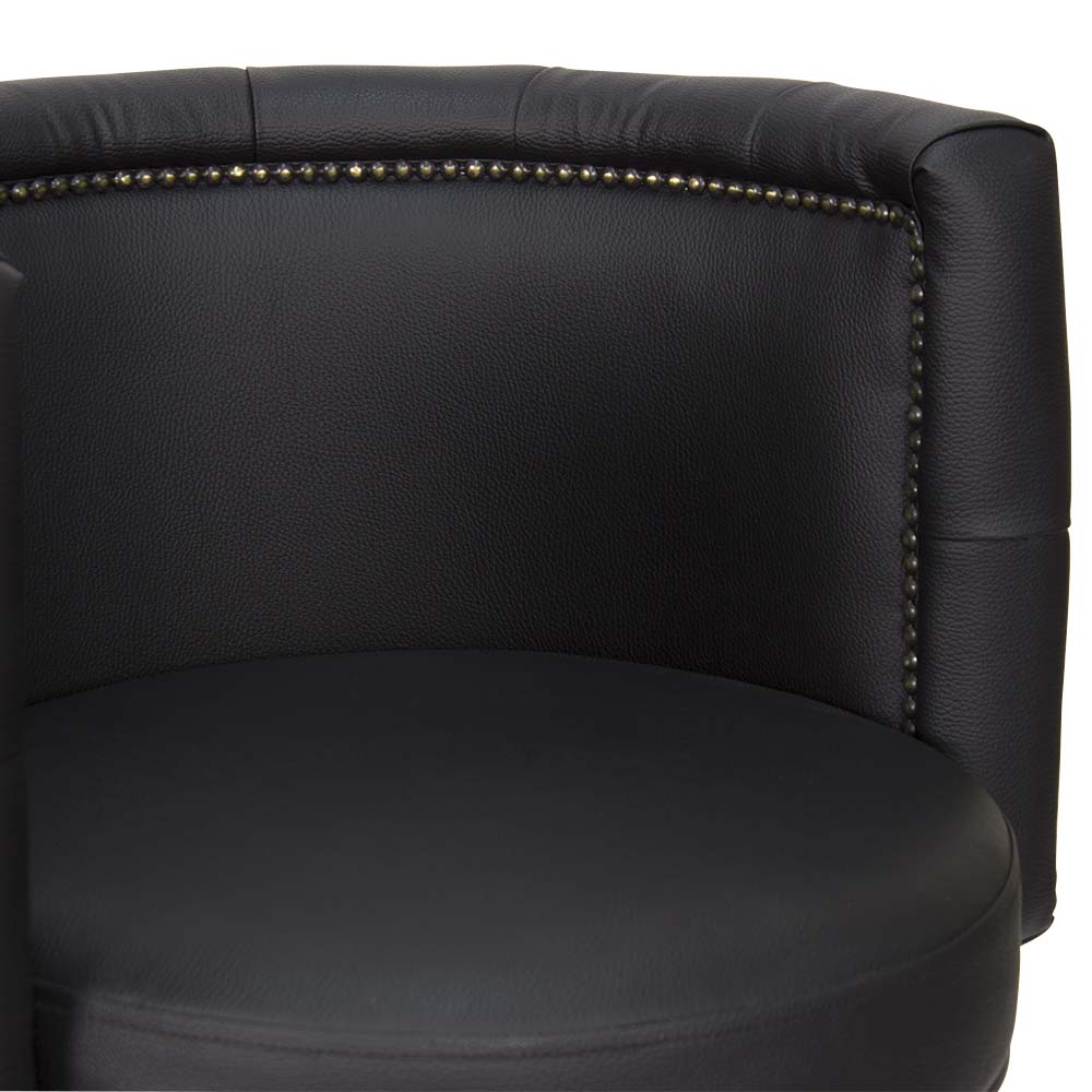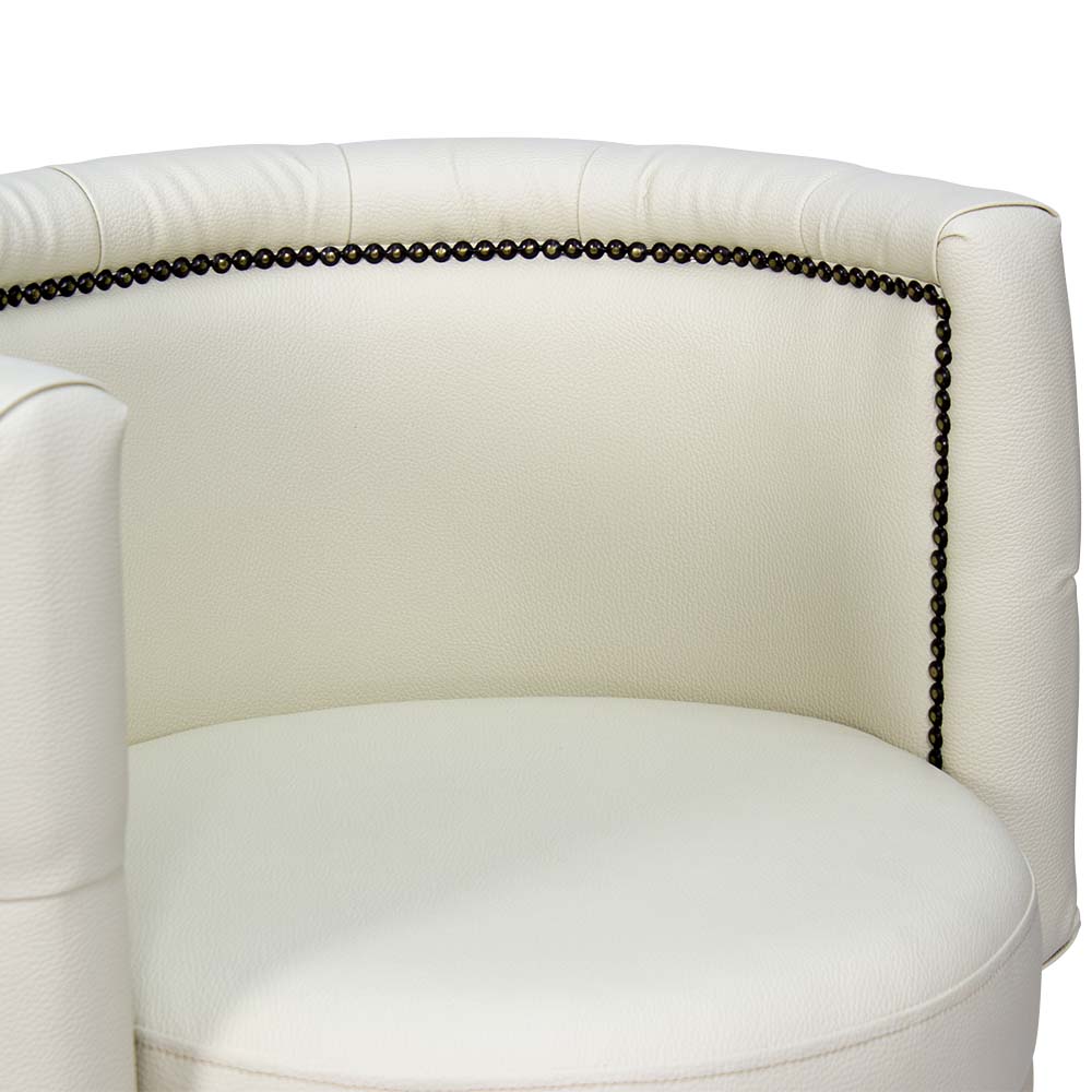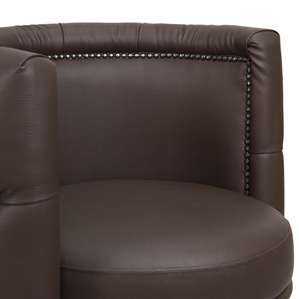 Внешняя сторона декорирована каретной стяжкой с пуговицами в цвет обивки.