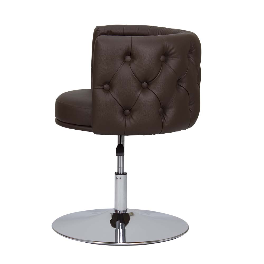 Стул регулируется по высоте с помощью хромированной пневматики.