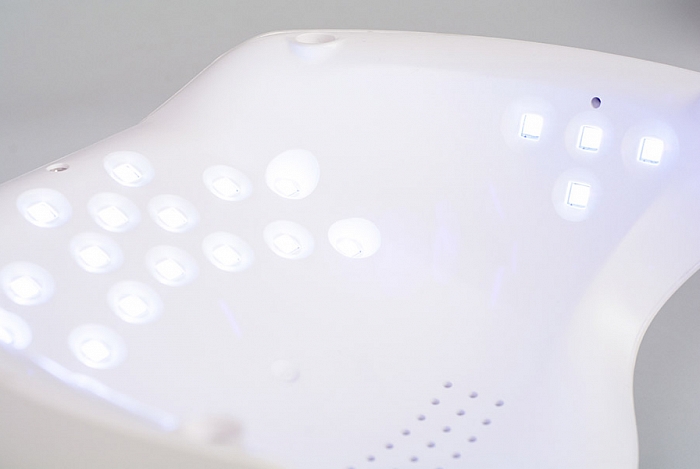 УФ-лампа "SD-6339А" оснащена 24 светодиодами и съемным дном на магнитах. Модель имеет режим автоматического повышения мощности Low Heat Mode, таймер, сенсор автоматического включения и систему охлаждения светодиодов.