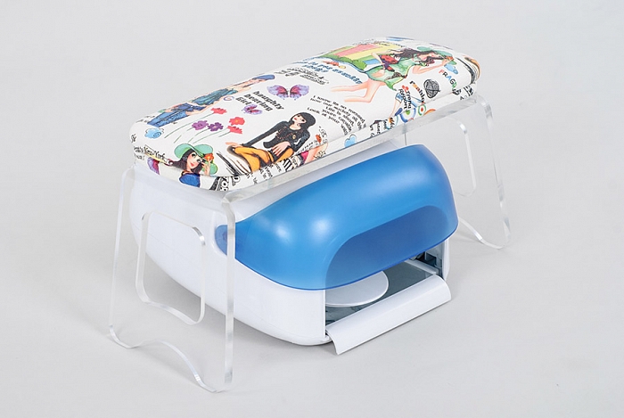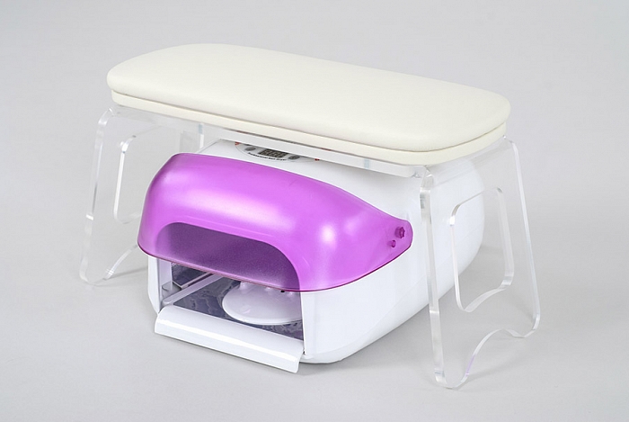 Подушка для маникюра на подставке "Felina Podio Grande" выполнена из качественной экокожи, устойчивой к истиранию. За счёт высоких ножек подставки (165 мм), под ней можно разместить УФ-лампу для сушки или маникюрный пылесос, что значительно сэкономит пространство на столе.