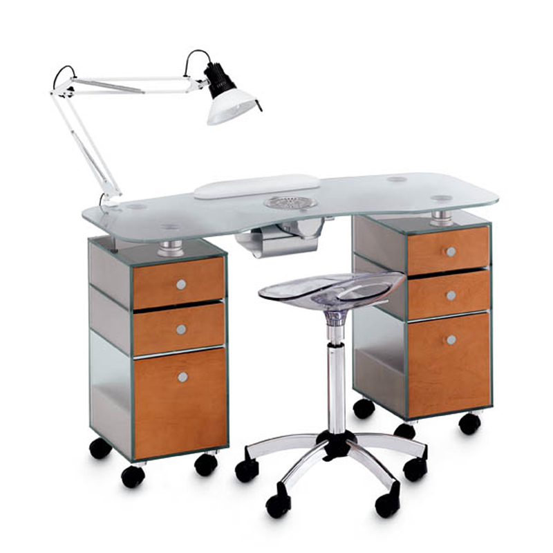 Маникюрный стол "187 LX" - со столешницей из матового и закаленного стекла и мебелью с 4 ящиками и 2 деревянными ящиками, 30-ваттный пылесос AR3 с мешком для сбора пыли.