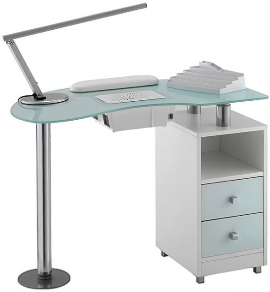 <div><strong>Стол маникюрный "486 LX" -</strong> с одной тумбой, столешница из стекла, тумба из дерева. Тумба маникюрного стола <span style="font-family: arial, verdana, sans-serif;">с артикулом <strong>A-</strong></span><strong>м60003096</strong><span style="font-family: arial, verdana, sans-serif;"> </span>оснащена нишей для хранения инструментов и двумя выдвижными ящиками, фронтальная часть ящиков покрыта стеклом.</div> <div> </div> <div>Вес: 40 кг;</div> <div>Объем: 0,34 м³;</div> <div>Количество мест: 3.</div> <div> </div> <div>Размер (ДхШхВ): 110x55x77 см</div>