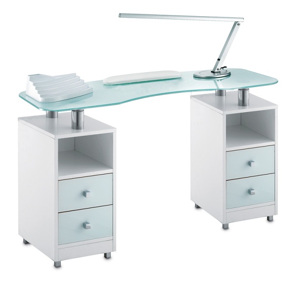 <div><strong>Стол маникюрный "489 L"</strong> - с двумя тумбами, столешница из стекла, тумбы из дерева. Тумбы маникюрного стола <span style="font-family: arial, verdana, sans-serif;">с артикулом <strong>A-</strong></span><strong>м60003100</strong><span style="font-family: arial, verdana, sans-serif;"> </span>оснащены нишами для хранения инструментов и двумя выдвижными ящиками, фронтальная часть ящиков покрыта стеклом. В комплекте: лампа, валик маникюрный, подставка под лаки.</div> <div> </div> <div>Вес: 57 кг;</div> <div>Объем: 0,51 м³;</div> <div>Количество мест: 4.</div> <div> </div> <div>Размер (ДхШхВ): 122x53x77 см</div>