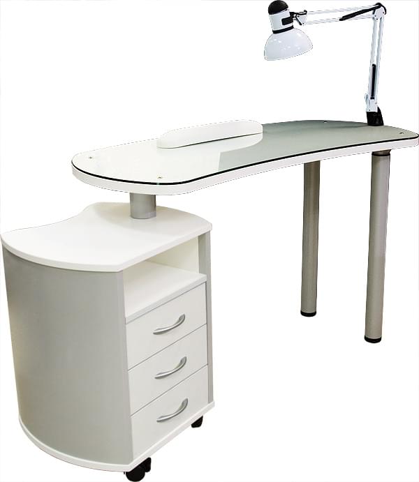 Маникюрный стол с поворотной тумбой. В комплекте: лампа, подушка маникюрная. Цвет: белый, венге. Размер:ДхШхВ 120х50х75