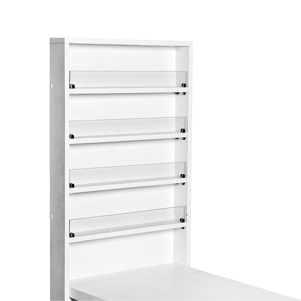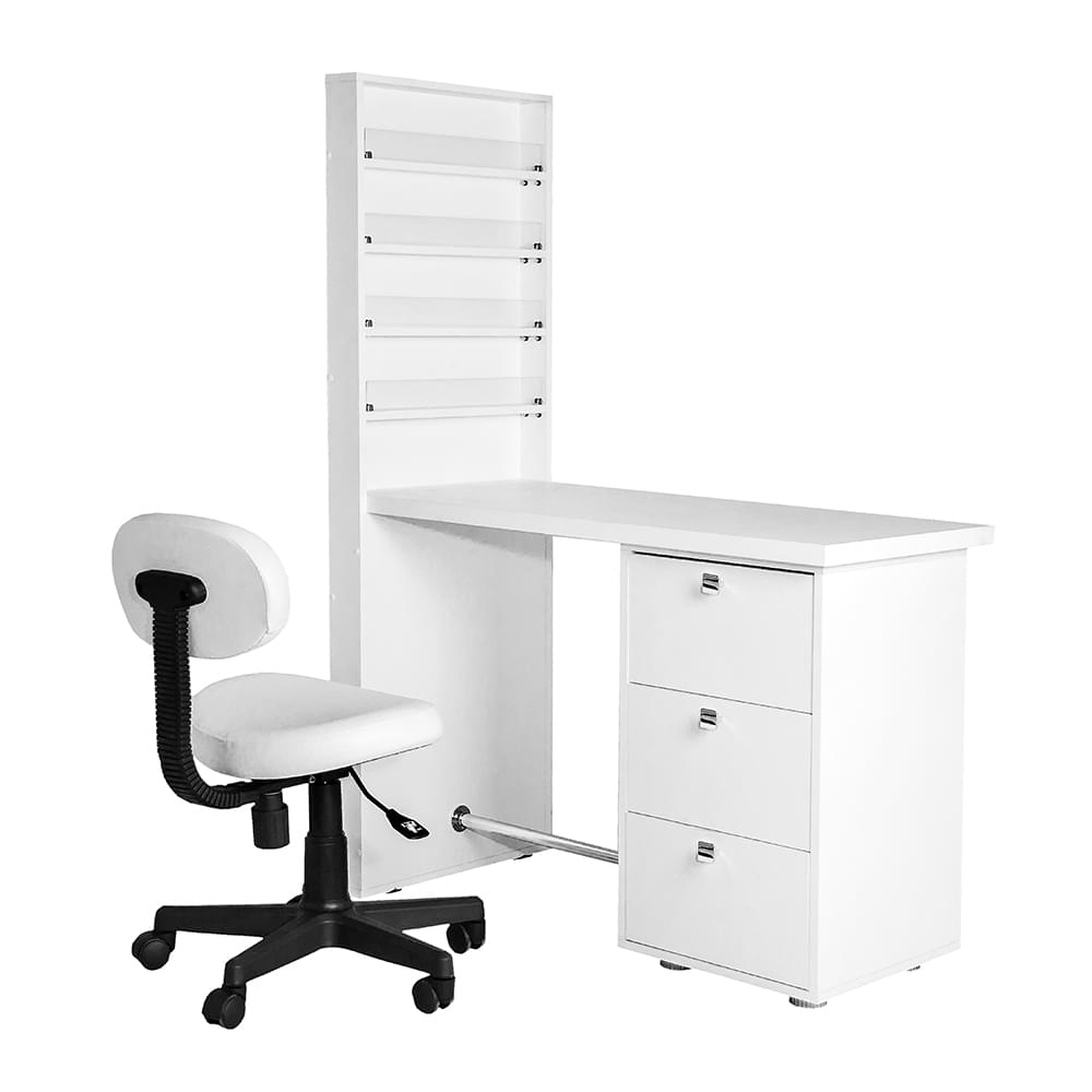 Маникюрный стол 203 – реальное, изящное изделие, которое превращает работу мастера в профессиональный подход, исключая все возможные недоработки, прорабатывая с клиентом все процедуры на одном дыхании. Этот комплект состоит из деревянной столешницы, крепкого каркаса, боковой высокой ниши с полкой, хромированной трубы для ног, тумбы на три полки, квадратных кнопок с дизайнерским подходом. Стиль визуально белый, напоминает нежные ноты совершенства и неповторимого дизайна. Четкость линий, где каждая грань состоит из общей структуры соединений. Надежное, сформировано согласно сертификации. Фишка от модных парикмахеров. Шедевр в одной ноте.