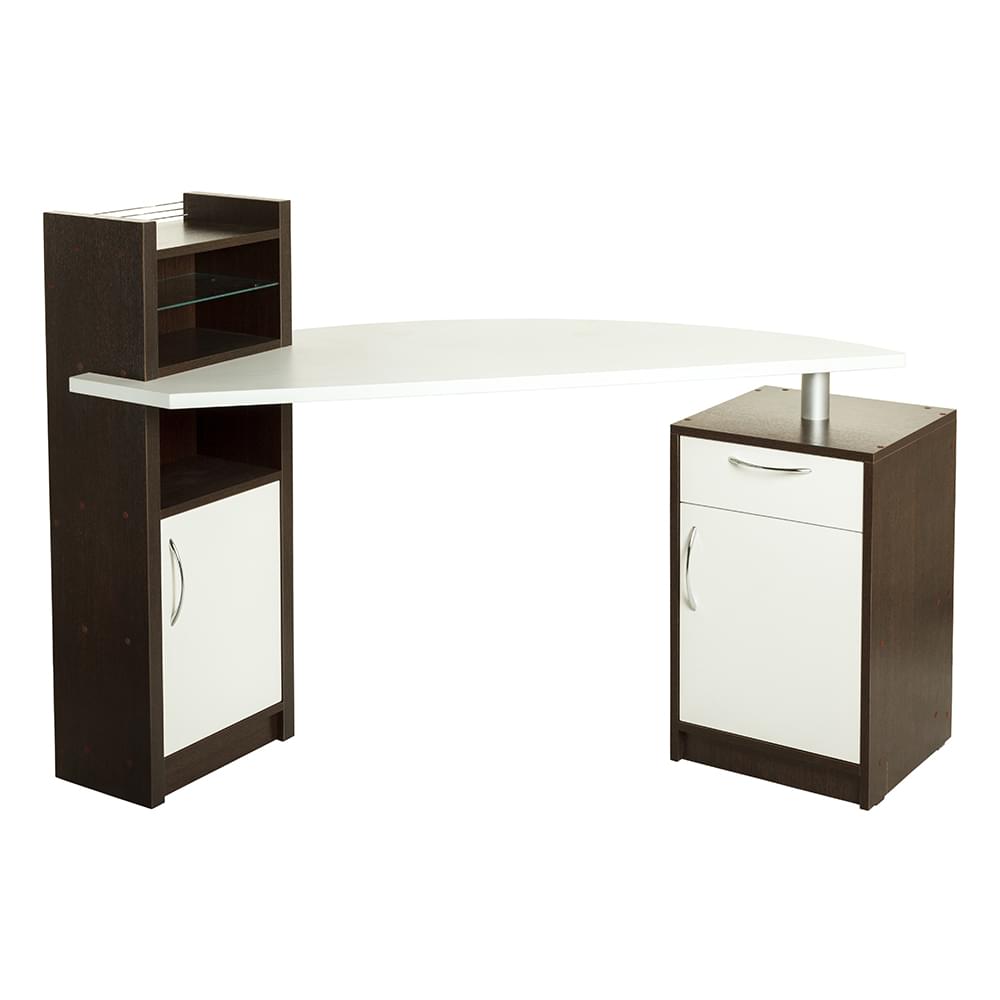 Маникюрный стол 207 – новое, профессиональное изделие, дизайнерский подход и необычная компоновка, где применены все новшества парикмахерского дела и создан натуральный атрибут экстра класса для сложной работы. Этот комплект состоит из крутой на вид лунной столешницы, хромированного крепления с цельной основой, двух тумб, одна имеет две полки, ниши, внутри со стеклом, вторая полку и большое отделение для расходных материалов. Стиль покоряет все вершины технологического прогресса, а также фанатов, эксклюзивных ценителей мирового шедевра. Надежное, классика в необычной, современной упаковке. Фишка стоит каждой копейки, которая может потратится в ходе оформления интерьера.