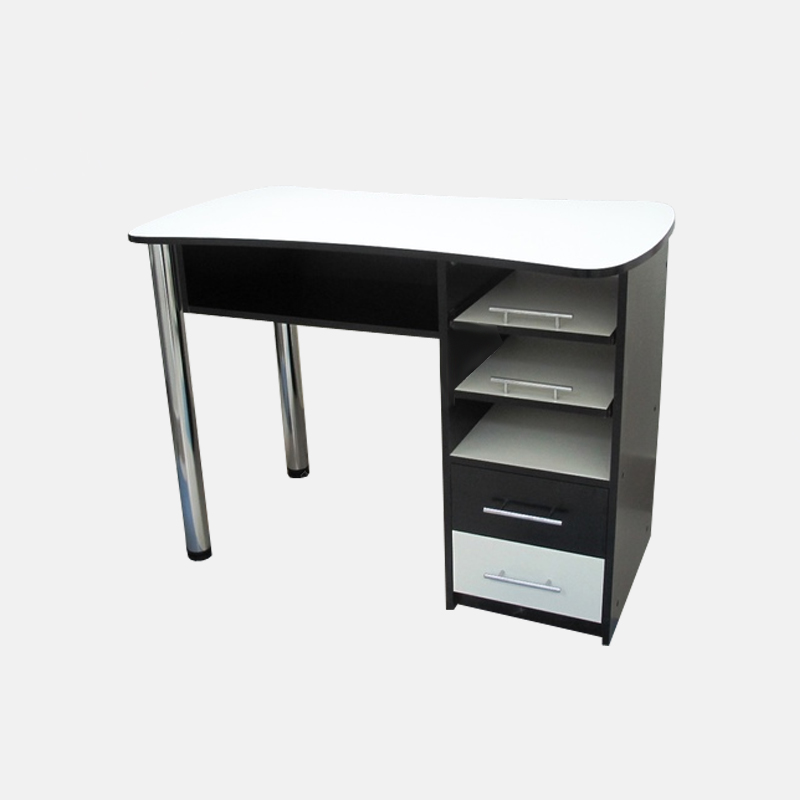 Стол рассчитан на одно рабочее место. Выполнен из материала ЛДСП, высокопрочного и износостойкого. Имеются две ноги из труб хромированные, тумба с двумя ящиками и тремя полками для хранения рабочих принадлежностей. За отдельную оплату можно встроить лампу с ультрафиолетовым излучением или вытяжку, электрическую розетку. В таком случае стоимость будет отличаться от базовой цены модели. Заказчик может выбрать любое цветовое сочетание согласно каталогу производителя. Внешний вид готового изделия может отличаться от первоначального изображения. Габариты: Ширина 1100 Глубина 600 Высота 790 Возможно изготовление размеров на заказ.Большой выбор цветового исполнения.
