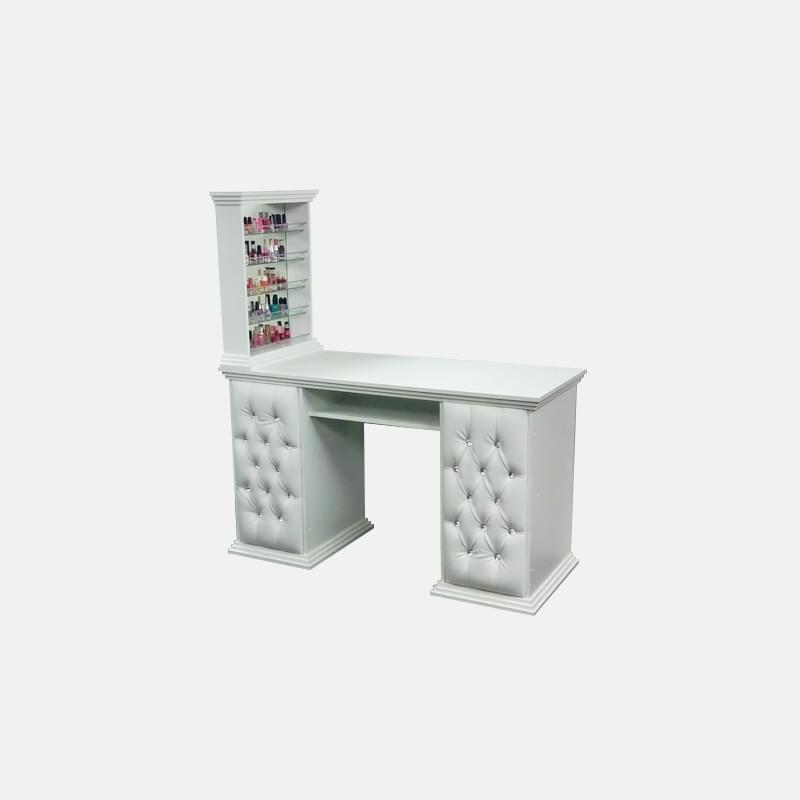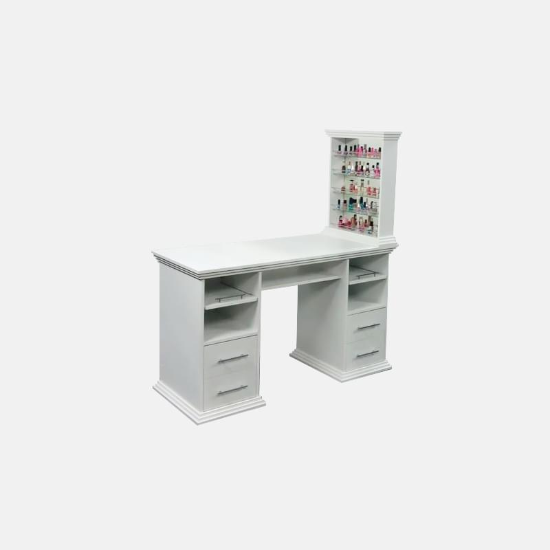 Маникюрный стол "Мариэтта" выполняется под заказ по индивидуальным размерам и одно из главных достоинств маникюрного стола «Мариэтта» - его вместительность. Здесь есть 4 вместительных выдвижных ящика, полка посредине и две боковых – с выдвижными подставками, которые можно извлечь и освободить больше места в высоту. Но самое главное – вместительная боковая стойка для лаков и других маникюрных средств.