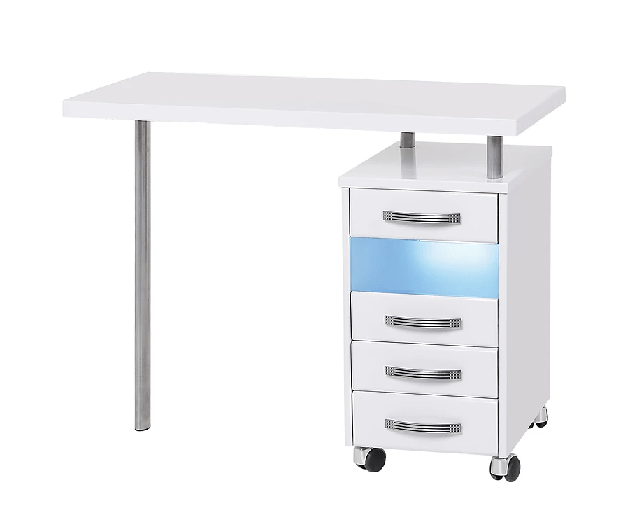 Столешница, стенки и фасады удобных и стильных маникюрных столов изготовлены по современным технологиям из экологически чистого материала (МДФ), покрытого высококачественной ПВХ пленкой европейских производителей. Для удобного передвижения маникюрный стол МЦ-029 с УФО-блоком оснащен специальными колесиками. Вместительные выдвижные ящики подойдут для хранения рабочих инструментов и косметических средств. Возможны варианты оснащения столов УФО-блоком и пылесосом, а также изготовления столешницы из закаленного стекла.