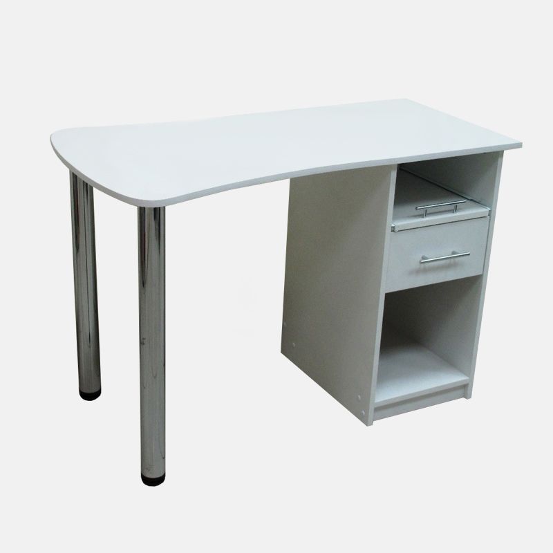 Стол выполнен из износостойкого ЛДСП, декорирован с лицевой стороны кожей в виде каретной стяжки, есть две ноги в виде хромированных труб. Столешница из ЛДСП, цвета материалов производства можно выбрать по каталогу и использовать в любых сочетаниях. Рассчитан данный маникюрный стол на одно рабочее место. Имеется вместительная тумба для маникюрных принадлежностей, выкатная полочка. Любые улучшения базовой модели, например, в виде встроенных электрических розеток или вытяжки, а также прочего возможно за дополнительную плату. Производитель оставляет за собой право изменять внешний вид изделий по собственному усмотрению. Размер: 1100х600х790 мм Возможно изменение цвета и размера по индивидуальным параметрам!
