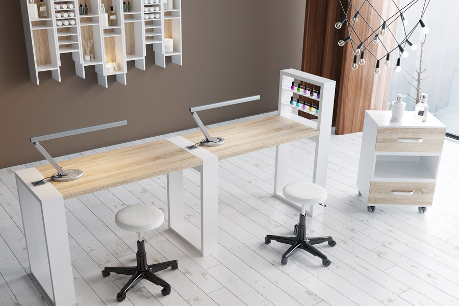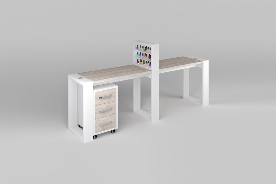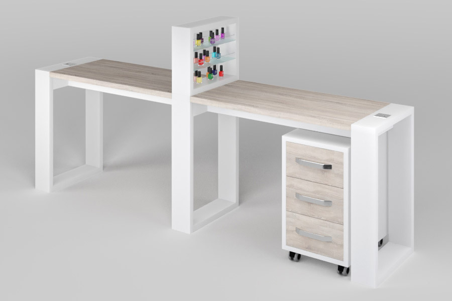 Маникюрный стол с подставкой для лаков и тумбой "Matrix" двухместный