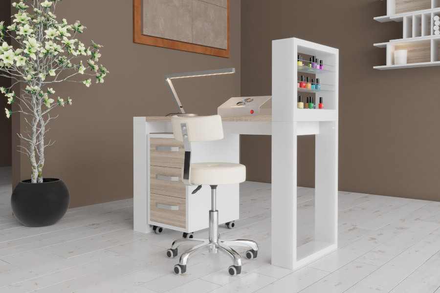 Модульный маникюрный стол с подставкой для лаков и тумбой "Matrix" выполнен из прочного износостойкого ЛДСП.