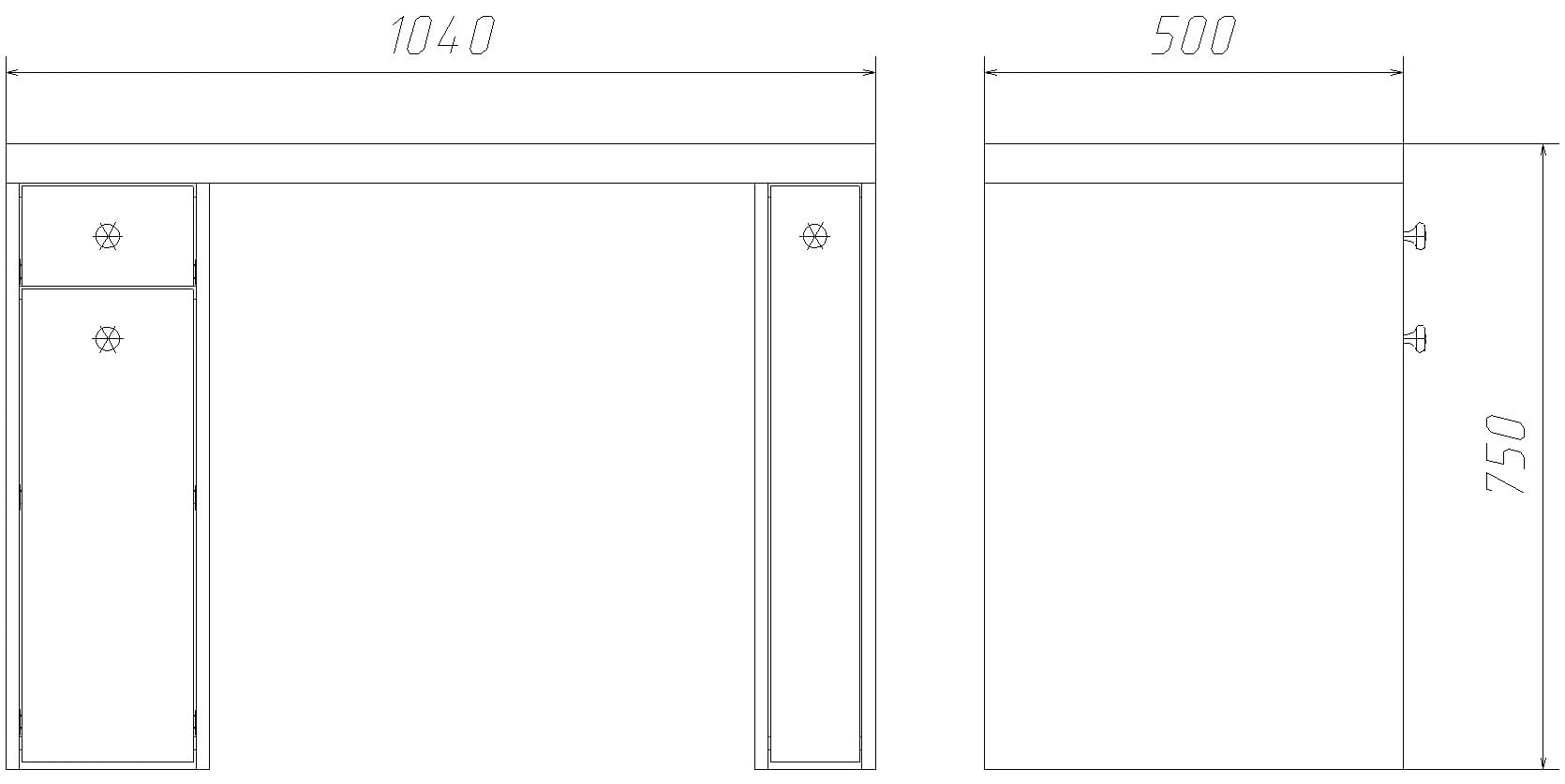 Левая тумба оборудована тремя выдвижными ящиками с роликовыми направляющими.