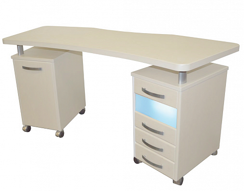 ​​​​​​​Стол маникюрный с 2 тумбами, фигурной столешницей и УФ-блоком "МЦ-053" - стол изготовлен из высококачественного ламинированного экологичного МДФ.