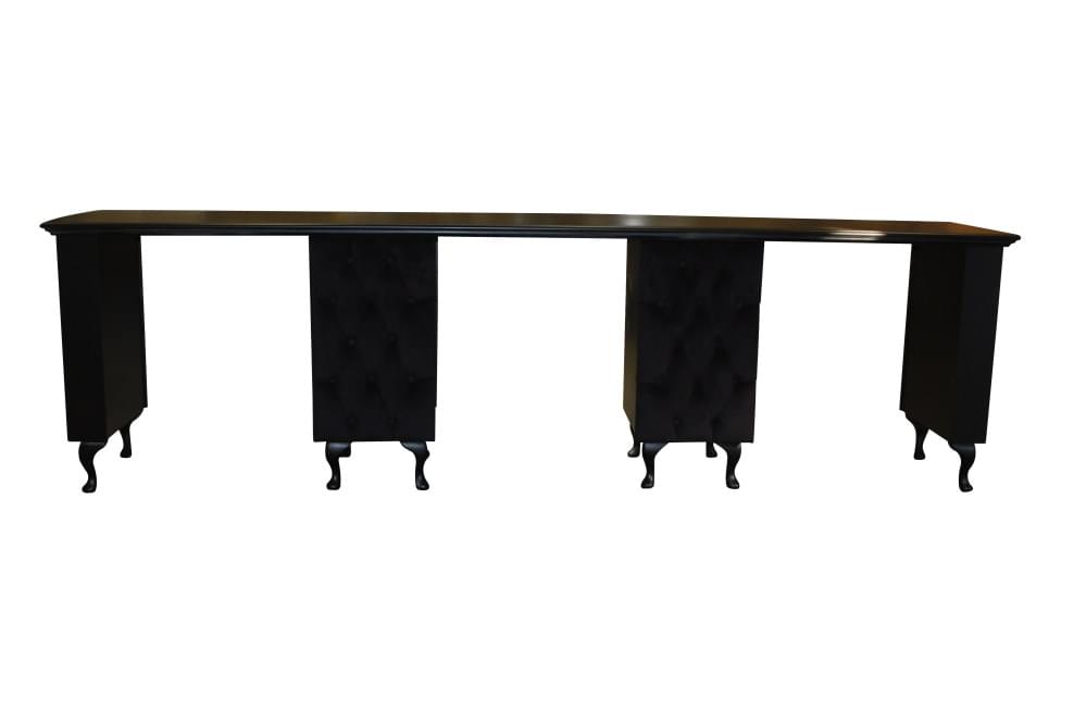 Тройной маникюрный стол создан специально для больших салонов красоты, но его можно использовать для парикмахерских с ограниченной площадью. Выделив место под данный предмет интерьера вы сможете получать больше прибыли и не терять клиентов при высокой посещаемости.Поверхность столешницы имеет стеклянный защитный слой, в рабочей зоне расположены два отсека с выдвижными ящиками, которые расположены между рабочими местами мастеров. Размеры, см:Высота - 76Длина - 270Ширина - 56Материалы:ЛДСП, кожзаменитель или текстиль